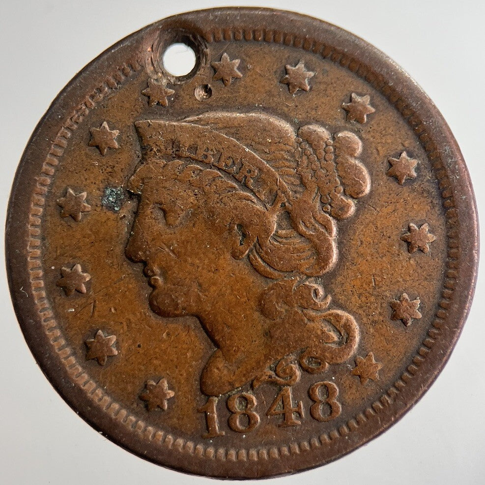 1848 US USA Large 1 One Cent Coin | Fine Collectable Grade | a8972