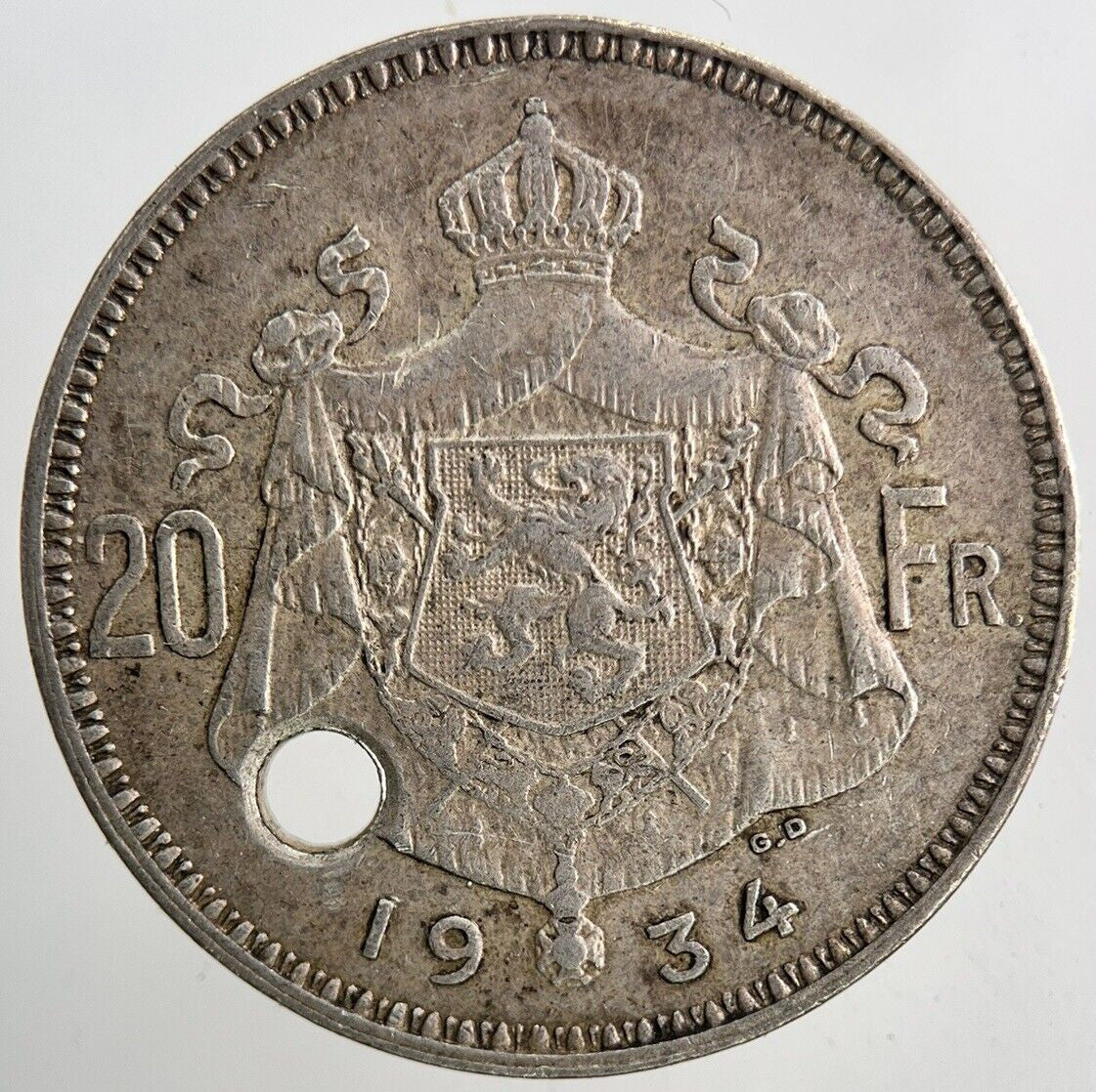 1934 Belgium 20 Franc Silver Coin | Fine Collectable Grade | a6563