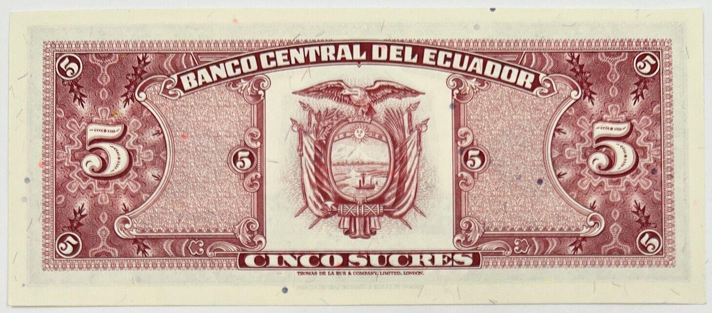 Old Vintage Ecuador 5 Sucres Banknote | Collectable Grade
