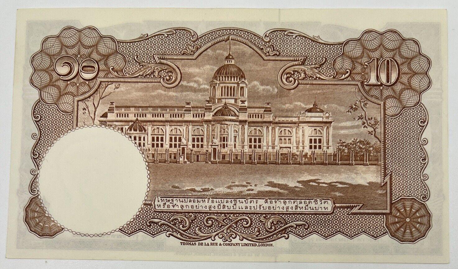Old Vintage Rama XI Thailand 10 Baht Banknote | UNC Uncircilated