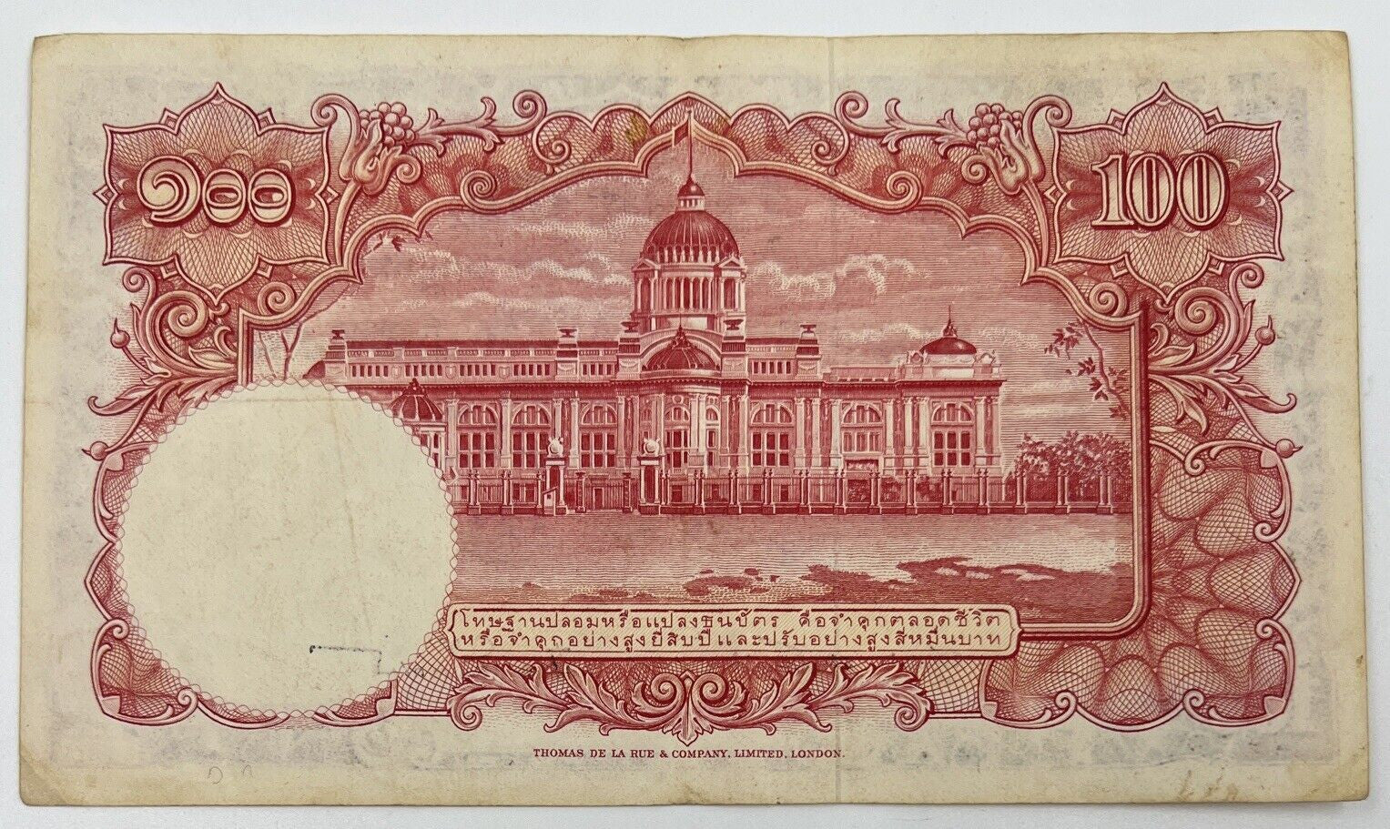 Old Vintage Rama XI Thailand 100 Baht Banknote | Collectable Grade